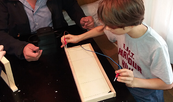 Am Sonntag hat mir mein Sohn beim Wachsplatten einlöten geholfen. Natürlich rückstandsfreies Wachs. Fast hätten wir vergessen den Draht nachzuspannen … Aber das hat dann auch geklappt. Geschickt hat sich mein Sohn dabei angestellt … (man muss genau darauf achten, dass der Draht nicht zu heiß wird … sonst schmilzt die Wachsplatte durch …)